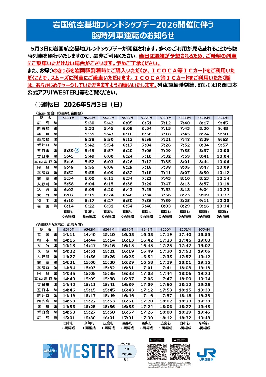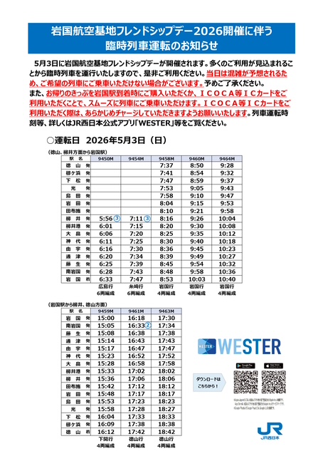 基地内からJR岩国駅 10:00~終了