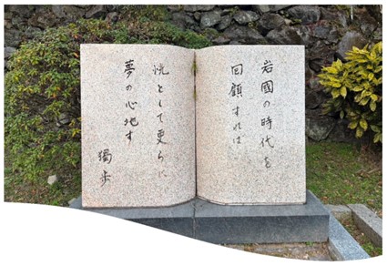 錦帯橋近くの庭園にある「国木田独歩の碑」(写真)には、日記「欺かざるの記」の一説が刻まれています。