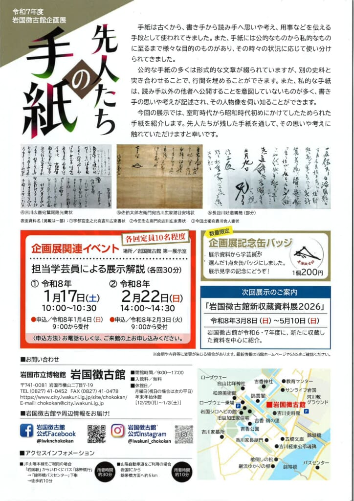 - 【岩国徴古館】先人たちの手紙 - 2025/12/21 - 2026/03/01 - AM 9:00 - PM 5:00