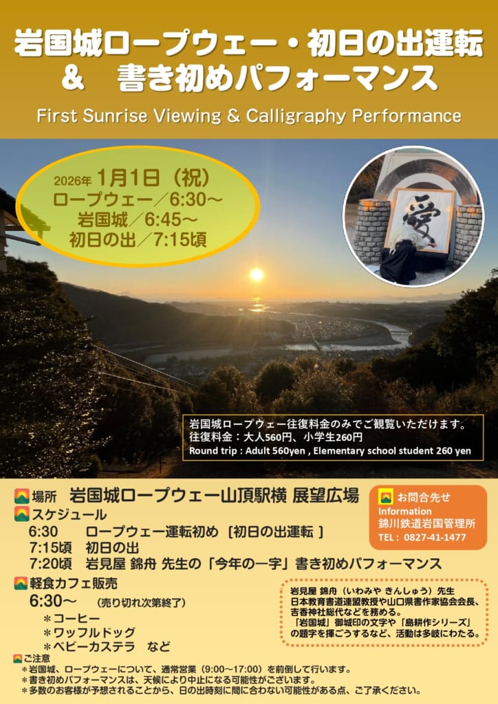 - 岩国城ロープウエー・初日の出運転 - 2026/01/01 - AM 6:30 - PM 5:00