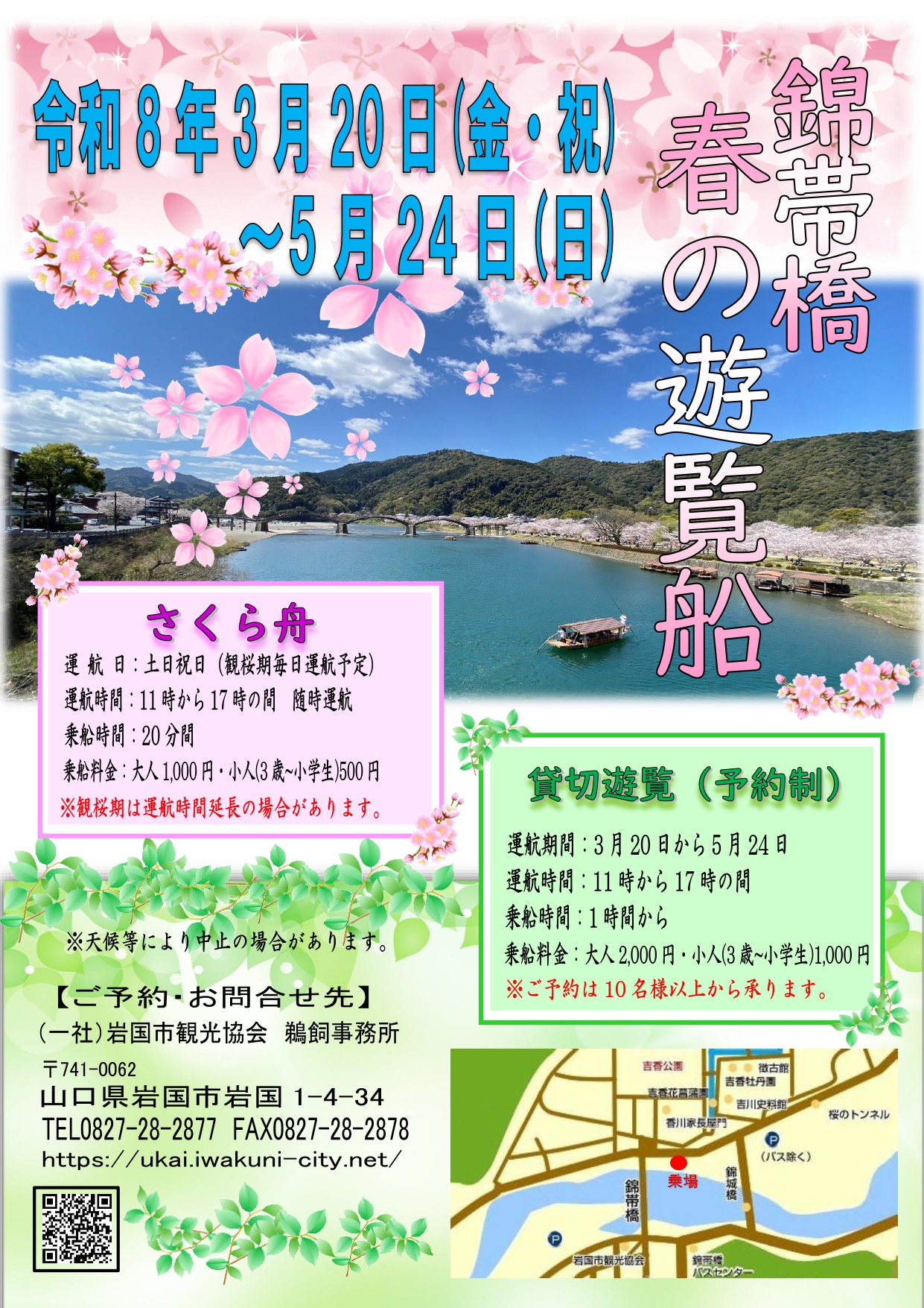 - 春の遊覧船「さくら舟」 - 2026/03/20 - 2026/05/24 - AM 11:00 - PM 5:00