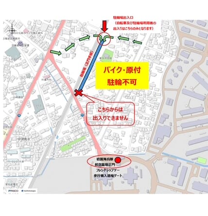 基地内に駐輪場はありません。以下のとおり駐輪場を設けておりますのでご利用ください。