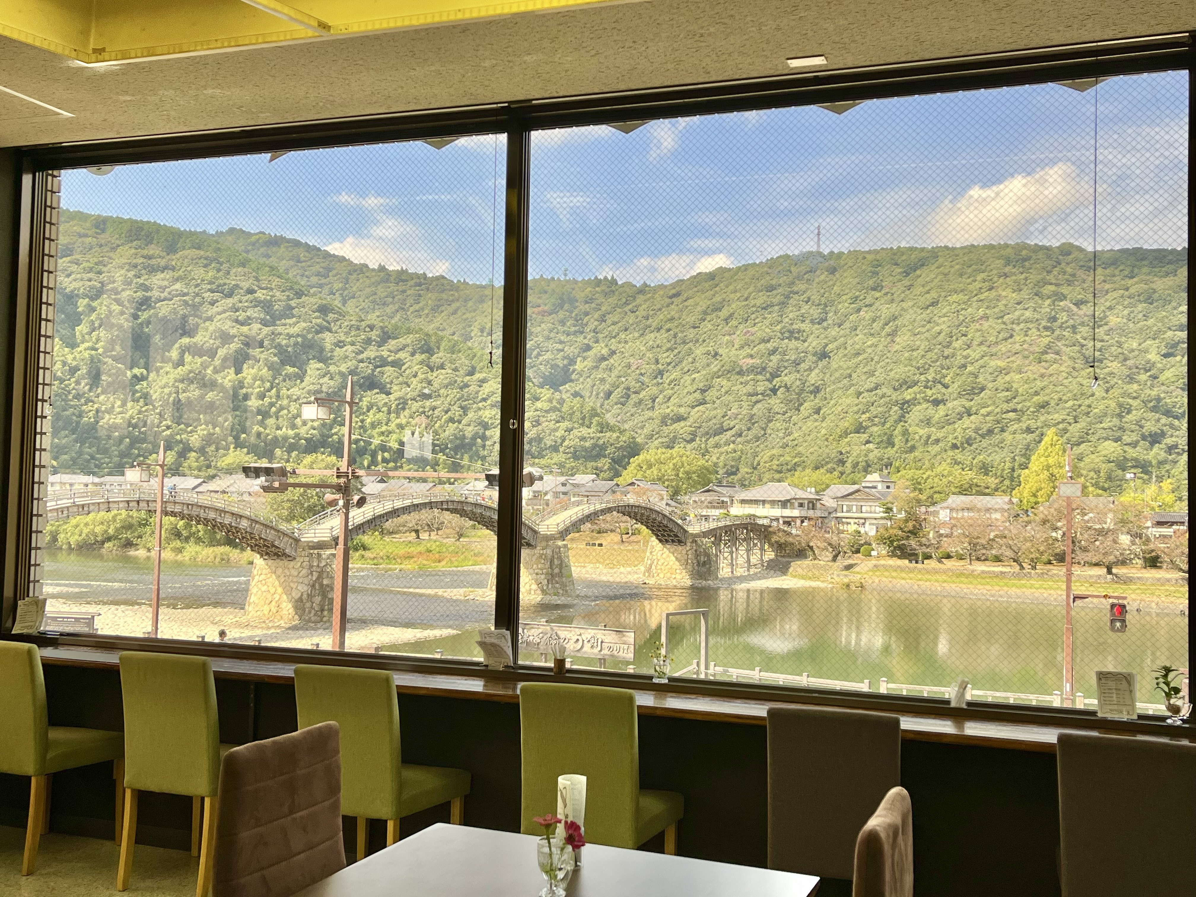 また、「カフェいつつばし」では、目の前に錦帯橋を眺めながら、名物の岩国寿司や岩国蓮根麺などを楽しめます。散策の休憩にもご利用いただけます。